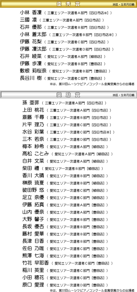 第27回ムーシケピアノコンクール 結果発表 第一楽器